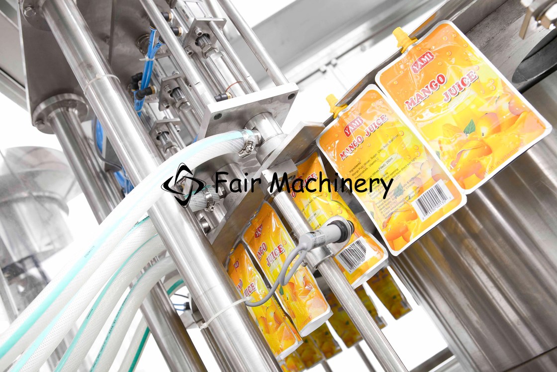 tự động treo túi → chiết rót tự động → điều khiển tự động mức chất lỏng → tự động đóng và đậy nắp → rút túi tự động là một hoạt động hoàn toàn tự động.